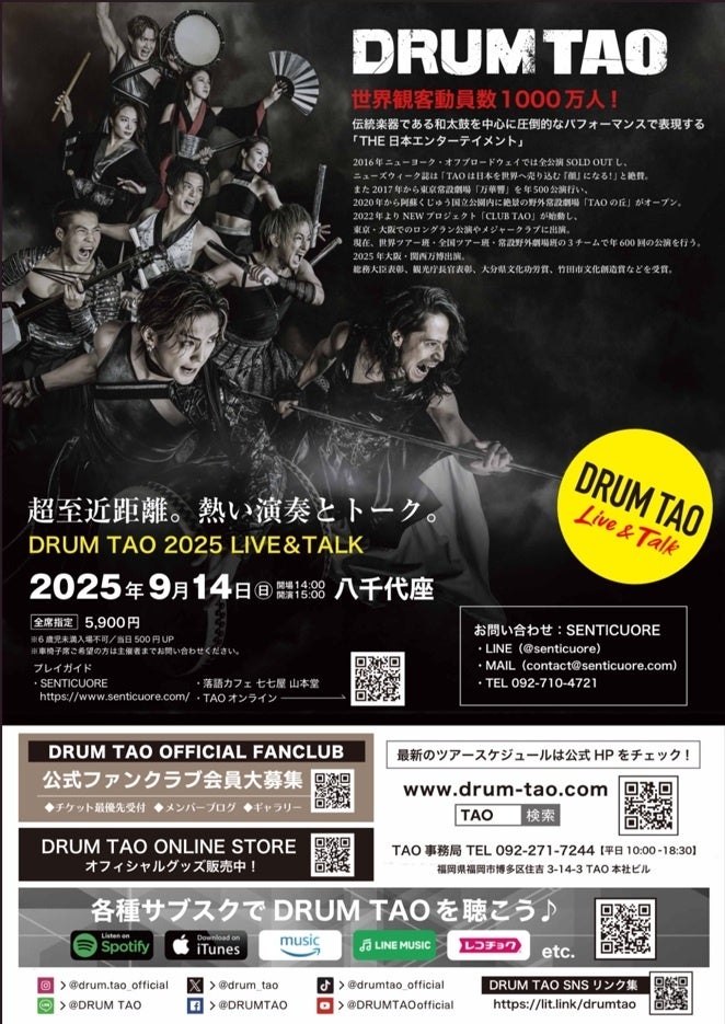 『DRUM TAO LIVE&TALK in 八千代座』を2025年9月14日(日)に開催決定!「チケットペイ」にて申し込み受付開始!