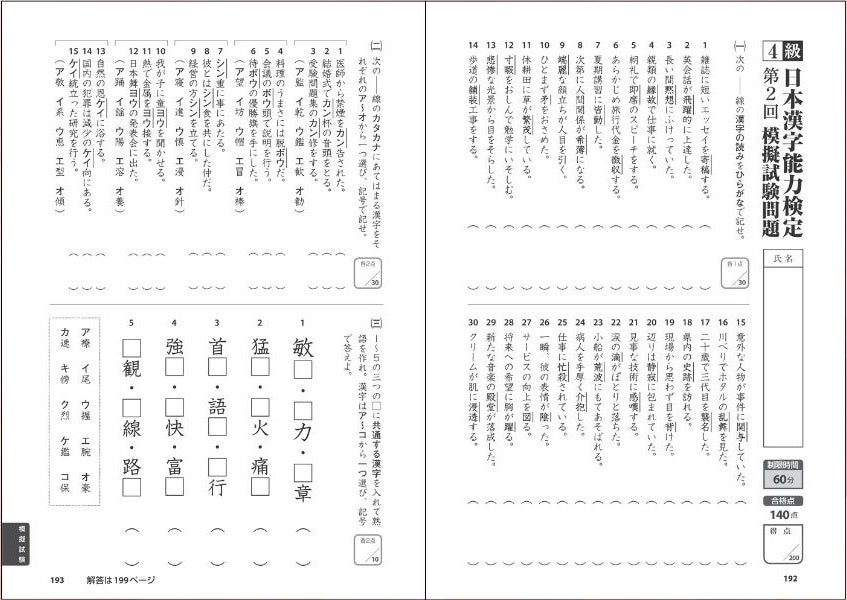 4級の合格点は200点満点中の140点です。つまり、70%正解すれば合格です。本書の問題カバー率は実に98%を超えています。4級の合格点をこの一冊で十分カバー。本書でしっかりと勉強すれば、一発合格間違いなしです。