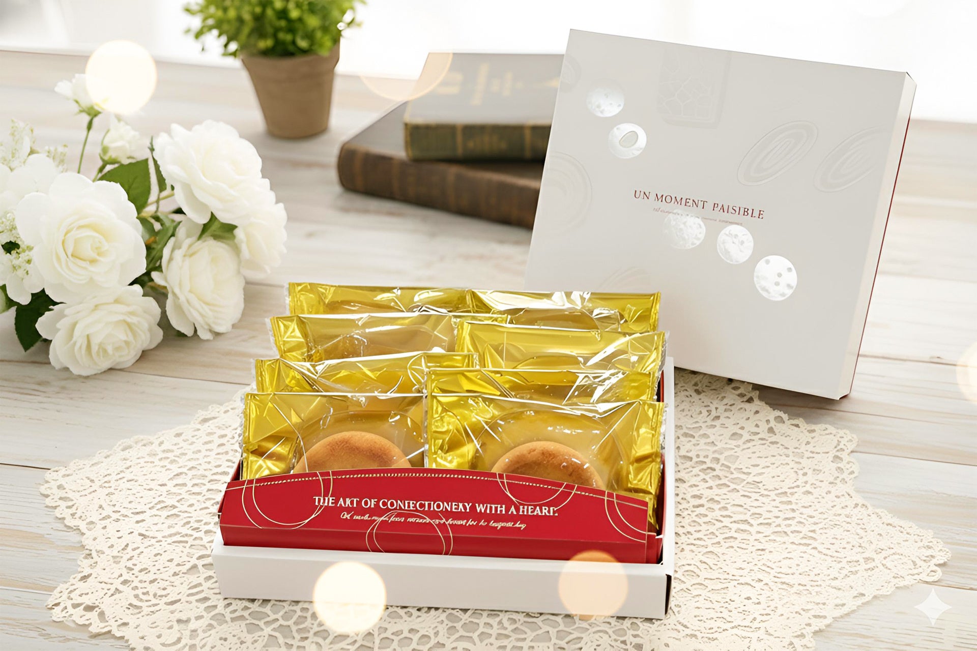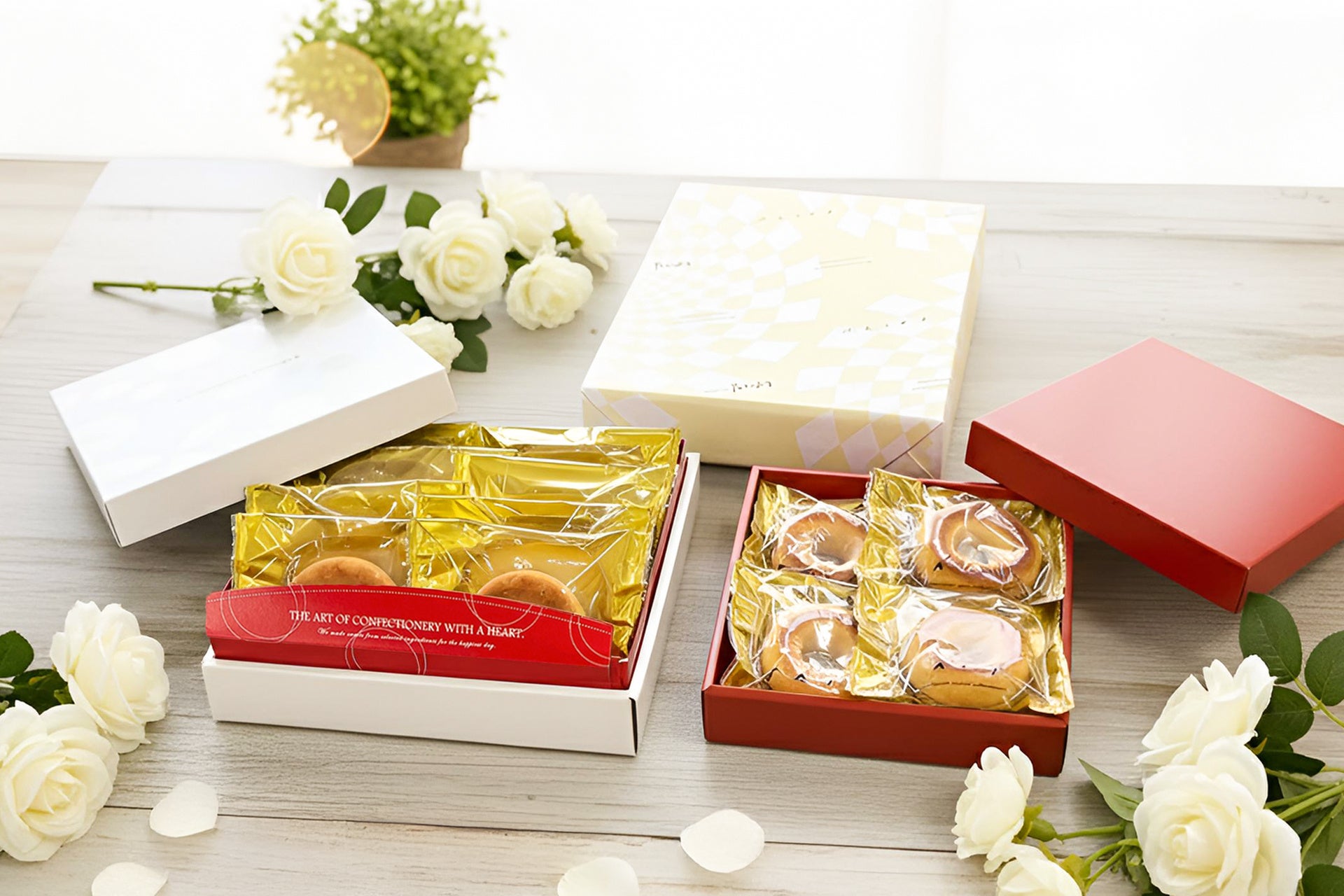 4個入り・8個入りの2サイズをご用意し、どちらも専用の化粧箱に入れてお届けします。