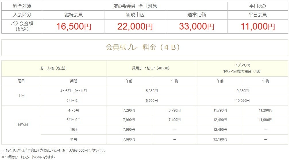 7.会員同伴料金あり。料金は営業案内に同封致します。