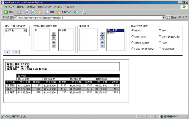 となりました。開発者は、表示/集計項目、ソート項目、ドリルダウン指定、