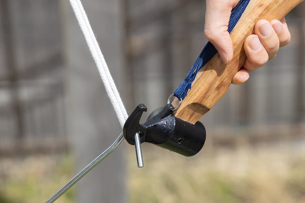 キャンプ初心者に向けたおすすめギアやお役立ち情報をYouTubeで発信するキャンプ歴約14年の「FUKU」が考案した、オリジナルのペグハンマー。荷物が多くなりがちなキャンプではギアの軽量化が重要ですが、このペグハンマーは「軽量・コンパクトかつ、実用的であること」を追求して作られました。軽量なペグハンマーだと固い地面には打ちづらいこともあるのですが、FUKUオリジナルの「ソロハンマー.S」は、従来のコンパクトサイズのペグハンマーと比べて「しっかり打ち込める」という点が特徴です。