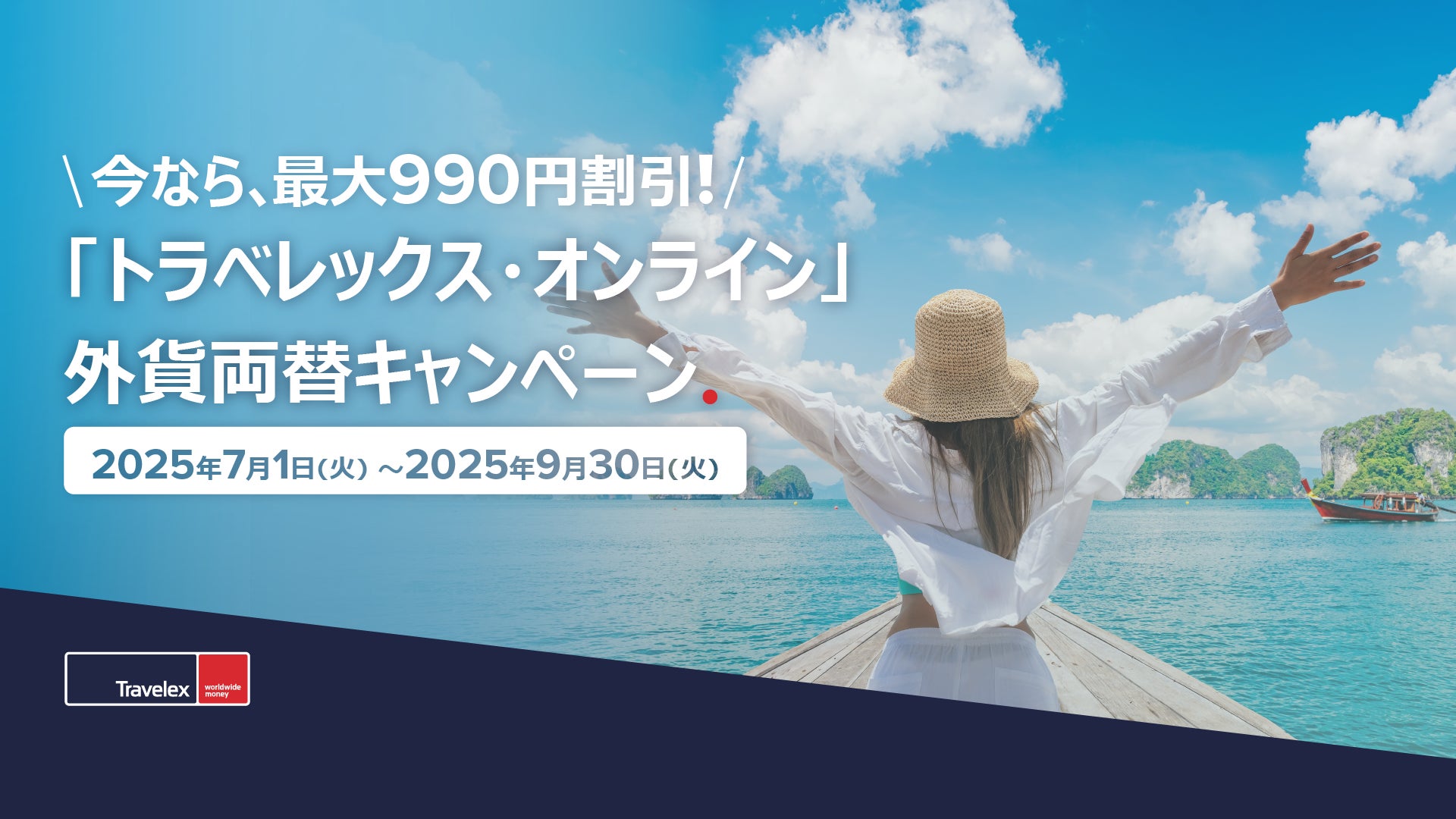トラベレックスジャパン株式会社(東京都港区 代表取締役 大谷淳)は、2025年7月1日(火)から9月30日(火)の期間、「最大990円割引!『トラベレックス・オンライン』外貨両替キャンペーン」を実施いたします。本キャンペーンでは、プロモーションコードを利用いただくことで、送料を最大990円割引いたします。