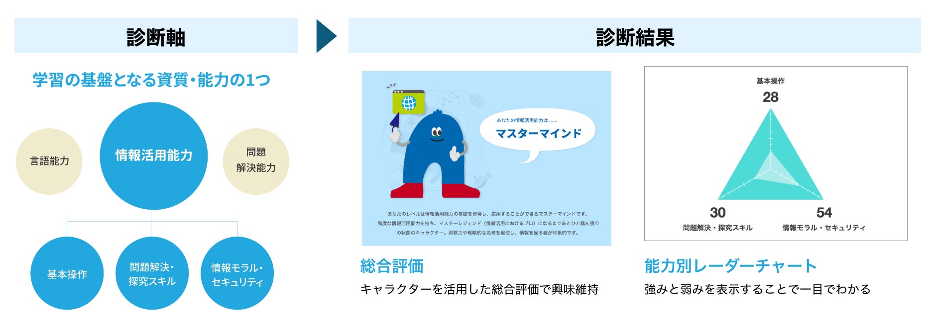「ジョーカツ」は、小学5年生から中学3年生までの教育課程においてPCやタブレット、インターネット活用を軸とした情報活用能力を診断することができるサービスです。