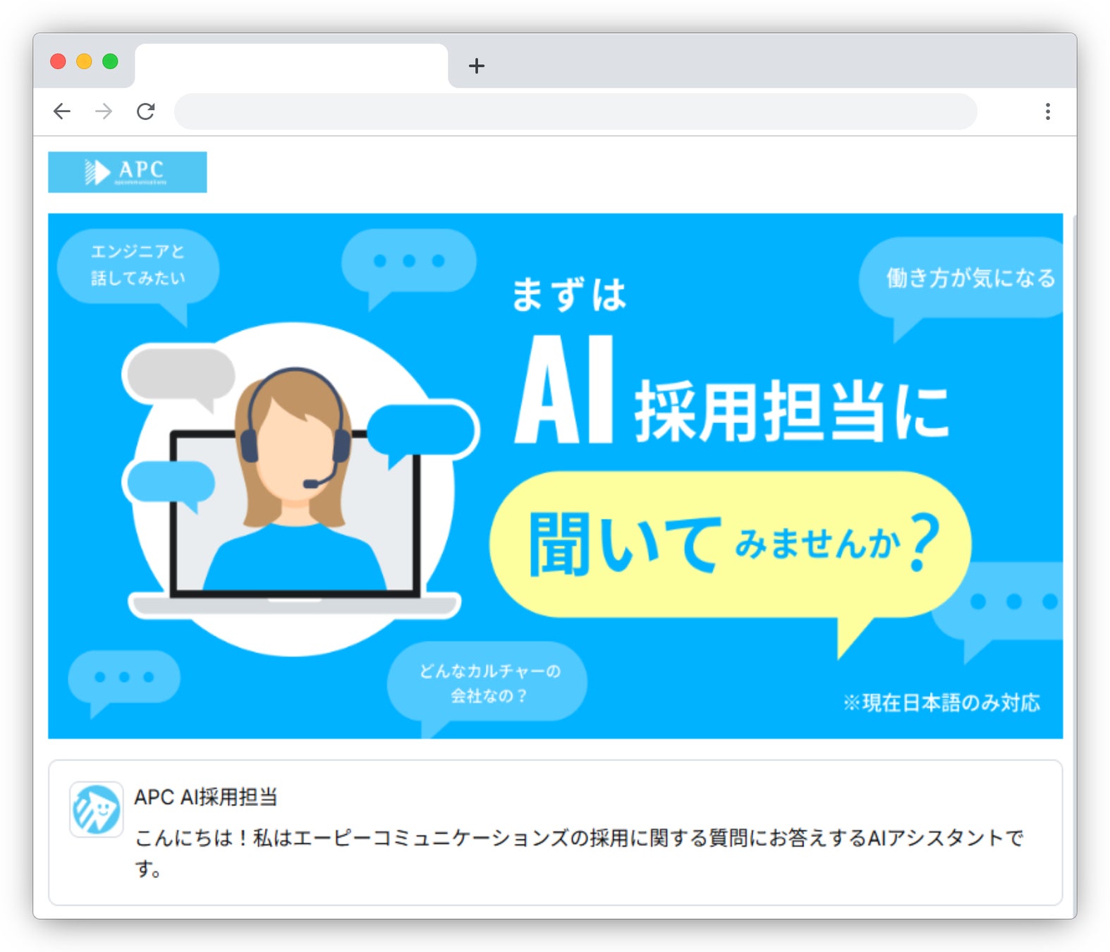 株式会社エーピーコミュニケーションズ(本社:東京都千代田区、代表取締役:内田武志、以下「当社」)は、株式会社エクサウィザーズ(東京都港区、代表取締役社長CEO:春田 真、以下エクサウィザーズ)のグループ会社である株式会社Exa Enterprise AI(本社:東京都港区、代表取締役:大植択真)が提供する生成AIサービス「exaBase 採用アシスタント」を、国内のシステムインテグレーター(SIer)として初めて導入し(※)、2025年12月より本格運用を開始しました。 これにより、当社の採用サイトにおいて、24時間365日、候補者からの質問に即座に回答する体制を構築しました。