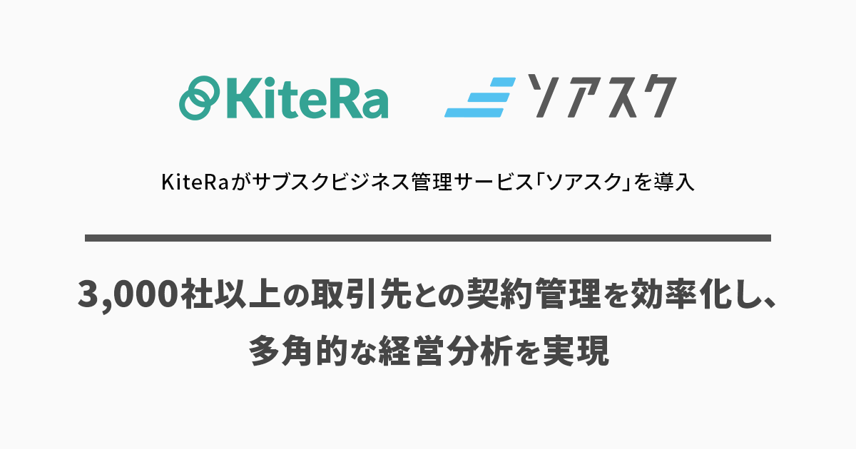 KiteRaがサブスクビジネス管理サービス「ソアスク」を導入