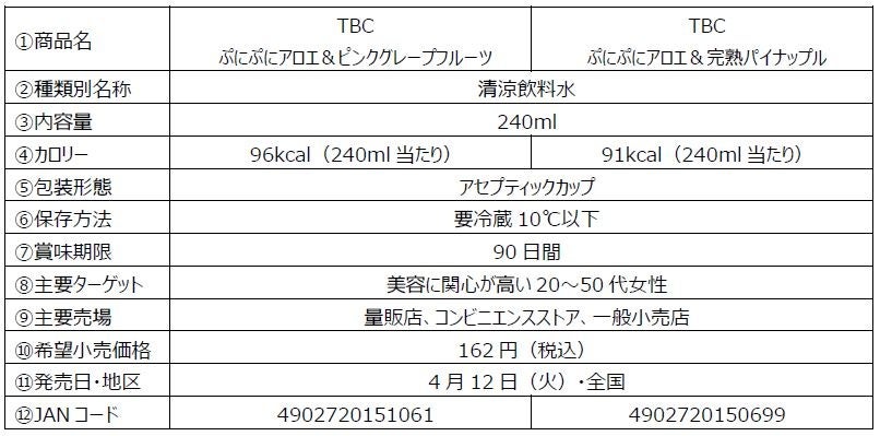 - 「TBC ドリンク」シリーズのその他の新商品