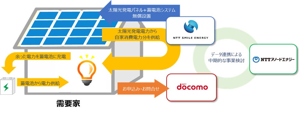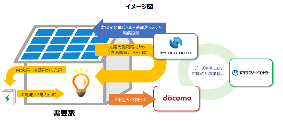 NTTドコモ・NTTアノードエナジー・NTTスマイルエナジー、家庭用太陽光発電・蓄電池の普及に向けた実証実験を開始