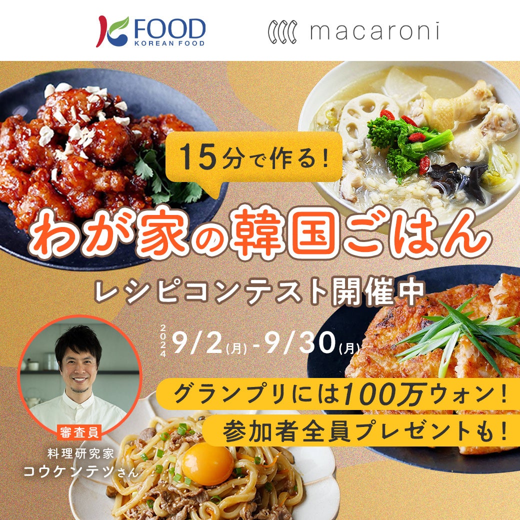 食と暮らしのメディア「macaroni」を運営する株式会社トラストリッジ(東京都目黒区)と韓国農水産食品流通公社大阪支社(大阪府大阪市)は、韓国料理の日本の食卓での一層の普及を目指し、レシピコンテストを開催しています。