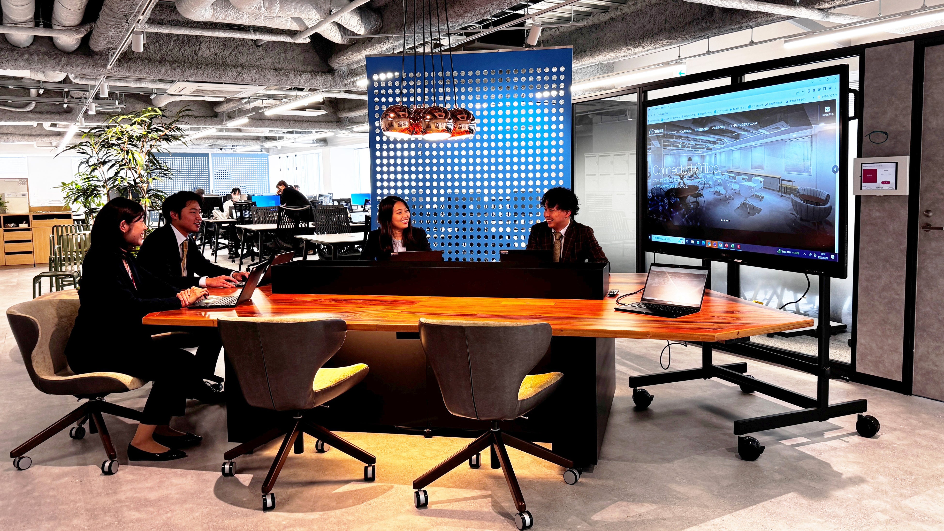 人と人とのつながりを意識し、フリーアドレスから一歩進んだグループアドレスを採用。Face to Faceコミュニケーションを大切にしたハイブリッドワークを実践する場として、働きやすいオフィス空間を構築しました。
