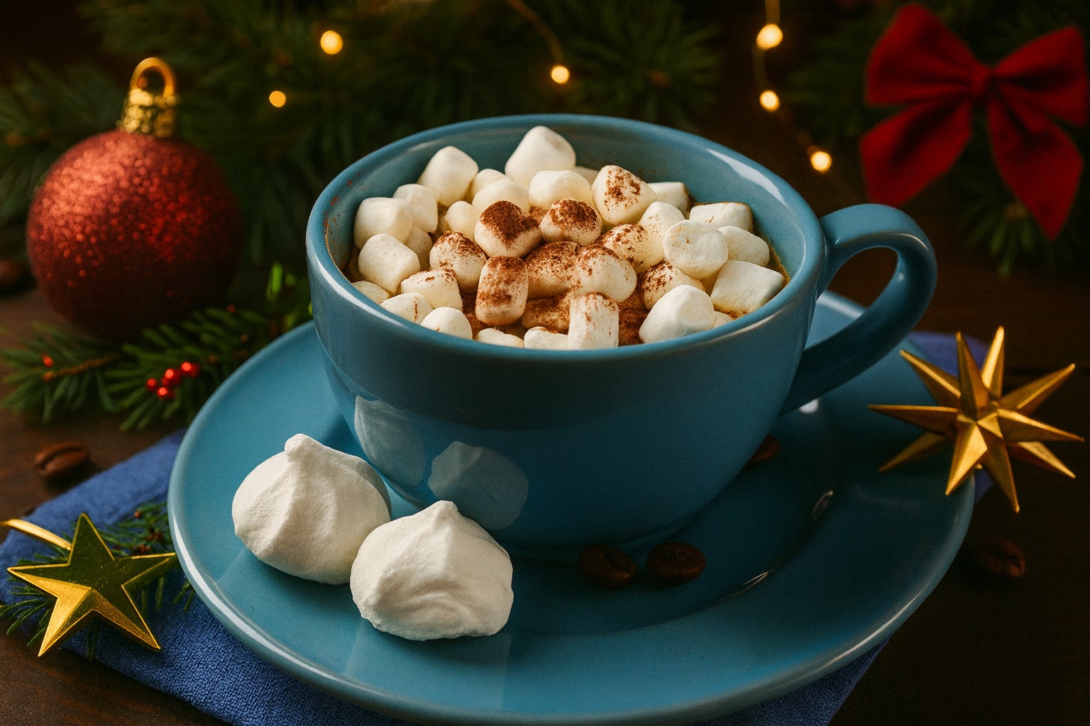 濃厚なあたたかいココアをたっぷりのミニマシュマロとともにお召し上がりください。