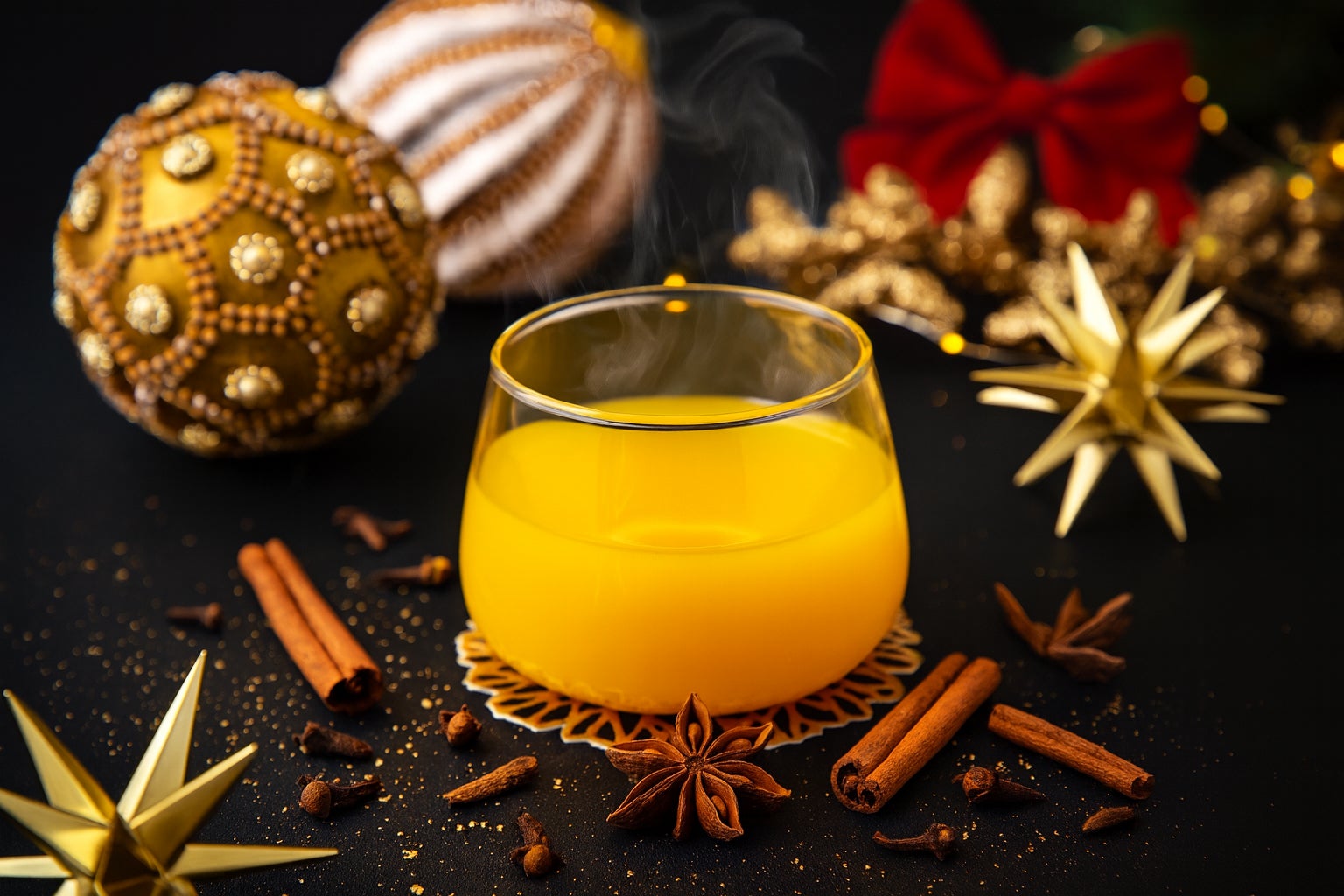 オレンジジュースにシナモンやスターアニスの香りを移しながら煮込んだ、からだの芯から温まるホットドリンク。