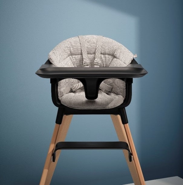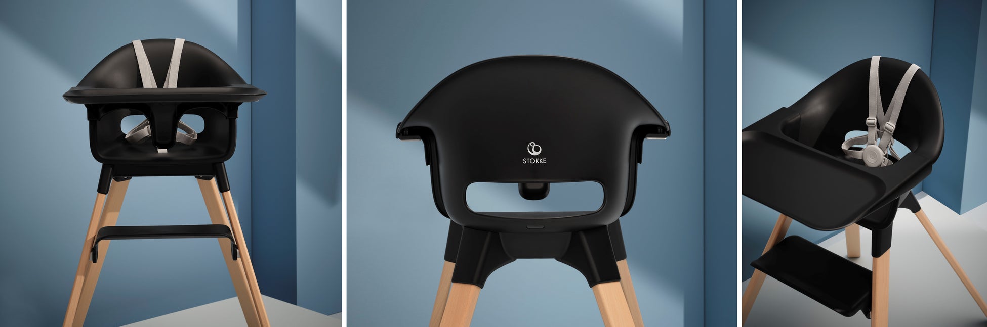 ストッケのハイチェアで定番のブラックがストッケ クリックにも新登場。家具業界でも今注目の色のブラックにナチュラルのレッグを合わせてすっきりと。
