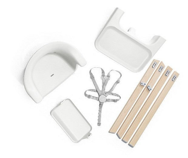 含まれるもの:チェア本体、トレイ、ハーネス(パーツの写真は既存製品のホワイトです)