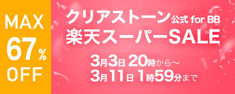 株式会社クリアストーン(本社:東京都、代表取締役社長:小野 志堅)は、2025年3月3日(月)より開催される楽天スーパーSALEにて、当社の人気アイテムを最大67%OFFで販売いたします。