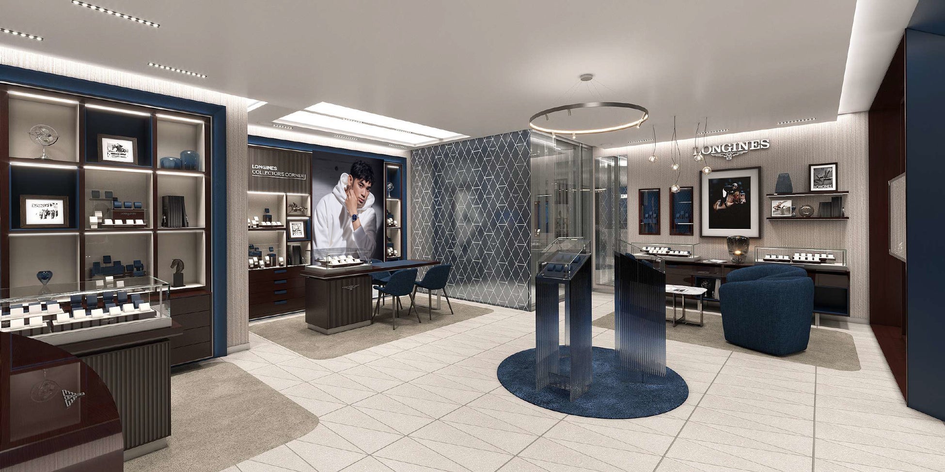 約2世紀に渡って、時代の先駆けとなるタイムピースを世に送り出してきたロンジン。創業190周年を迎えた2022年、ロンジンは銀座7丁目の日本の旗艦店である「ロンジン ブティック銀座」をリニューアルオープンします。“ロンジン レジデンス”をコンセプトにした店内は、ロンジンブルーを基調に、様々な素材や色使いが印象的なコンテンポラリーなデザインに仕上げられています。スタイリッシュさの中に長い歴史を感じさせる落ち着きのある空間で時計をお選びいただけます。