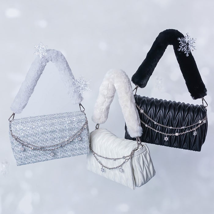 雪の結晶をモチーフにしたチェーンがポイントの2WAYショルダーバッグ。
