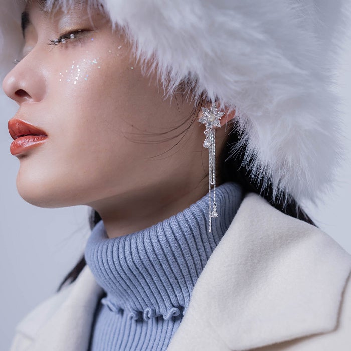 キラキラと輝く雪の結晶をモチーフにした、ロマンティックなムード漂うイヤーアクセサリー。