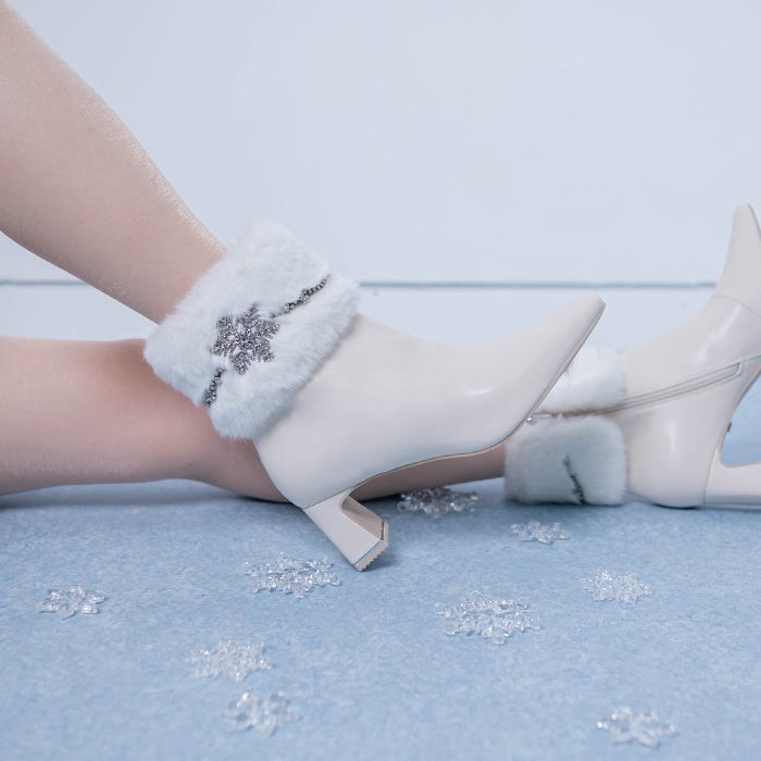 雪の結晶をモチーフにしたビジューがロマンティックで煌びやかなスタイルへと導いてくれるオリジナルのショートブーツ。