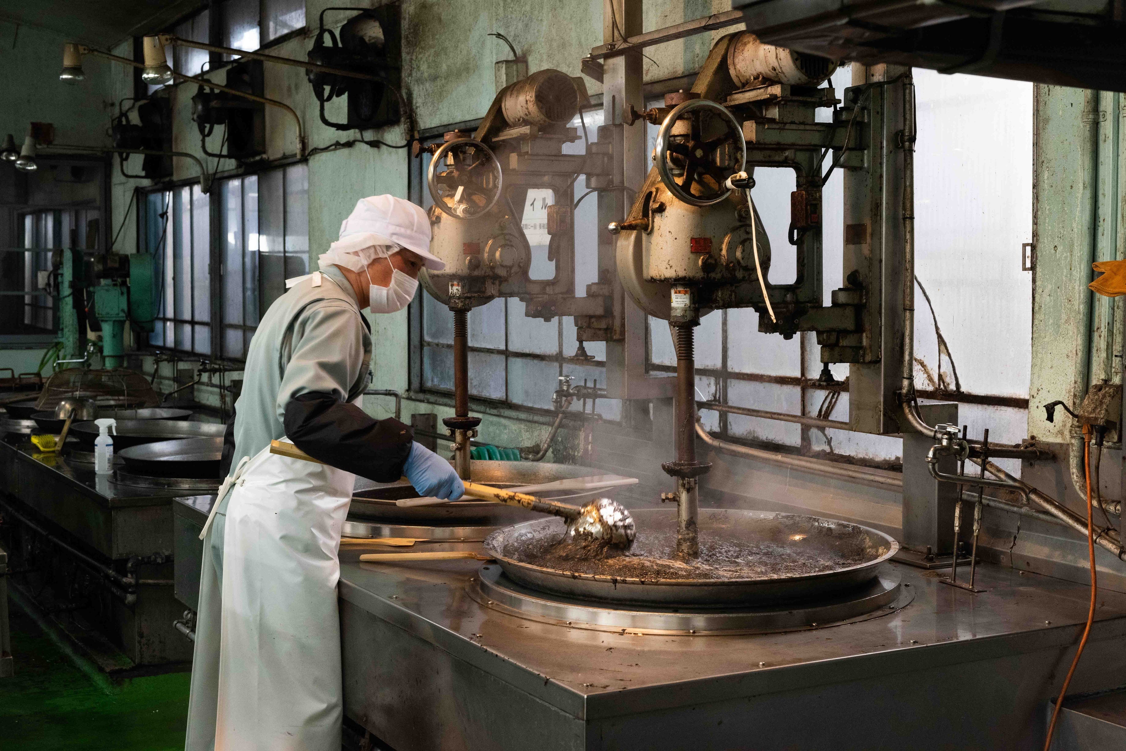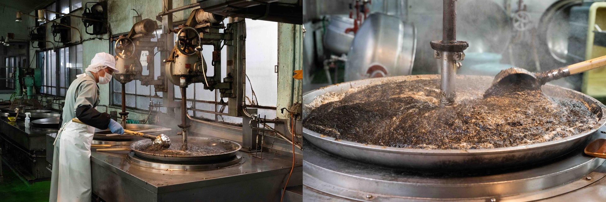職人がその日の気候を見極め、伝統的な直火炊釜でじっくりと炊き上げます。直火炊きすることによりふっくら香ばしい佃煮に仕上がります。