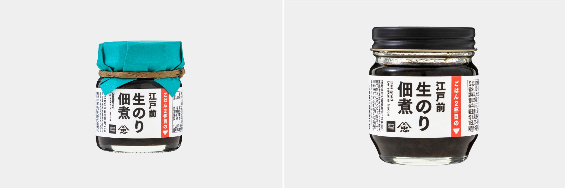 「ご飯2杯目の 生のり佃煮」は、メインのおかずを食べ終わった後に思わずおかわりしたくなる、ご飯のおともをテーマにしたsakana baccaの新商品です。遠忠食品が販売する「江戸前でぃ! 生のり佃煮」をリパッケージングしました。遠忠食品は、昔ながらの製法で作られた国産原料の調味料を使い、創業当初から頑なに守り継いでいる直火炊きにこだわって商品づくりを行なっています。sakana baccaは商品の安全性、そして自然な味わいに共感してPB商品として採用させていただきました。