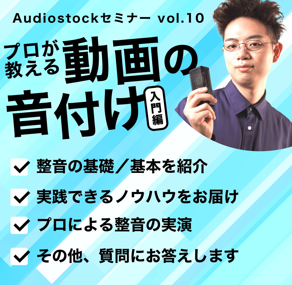 世界最大級のロイヤリティフリーのストックミュージックサービス「Audiostock」(https://audiostock.jp)を運営し、音楽コンテンツ流通のDXを推進する株式会社オーディオストック(岡山市北区、代表取締役社長:西尾 周一郎、以下「当社」)はこの度、映像制作に携わる方を対象にオンラインセミナー「プロが教える!動画の音付け~入門編~」を2022年3月2日に開催いたします。