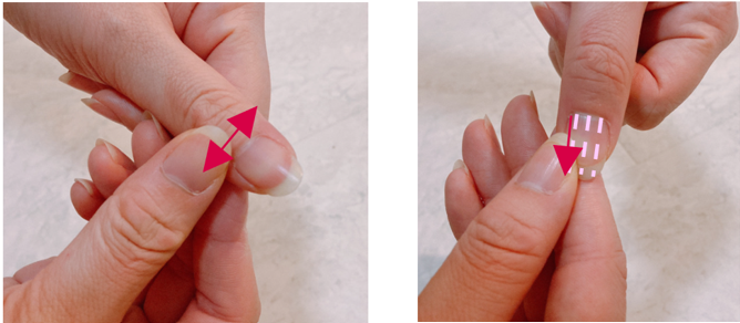 爪の生え際から4ブロックほどに分けて、爪先に流す。