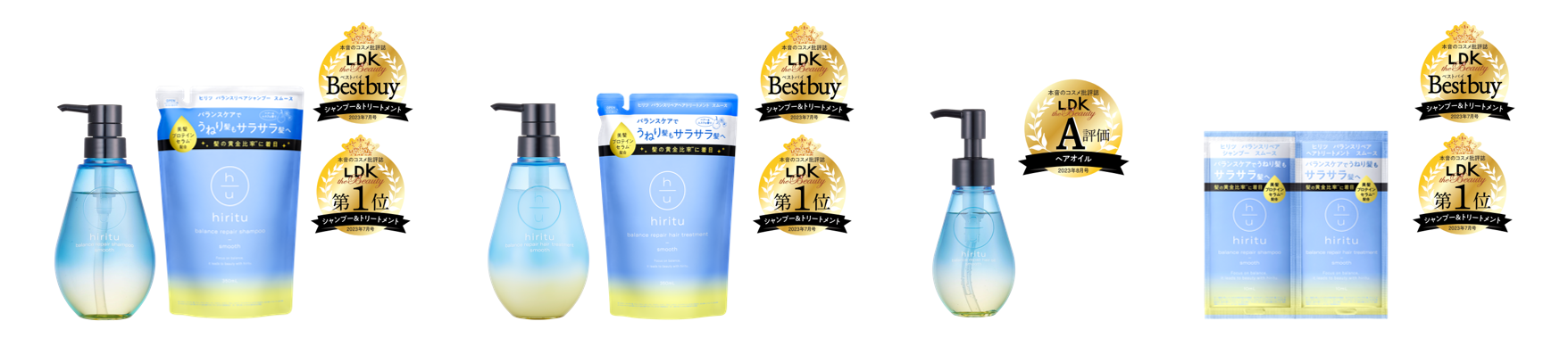 ・「ヒリツ バランスリペアシャンプー・ヘアトリートメント スムース」でシャンプー&トリートメント部門ベストバイ&第1位受賞(2023年7月号)