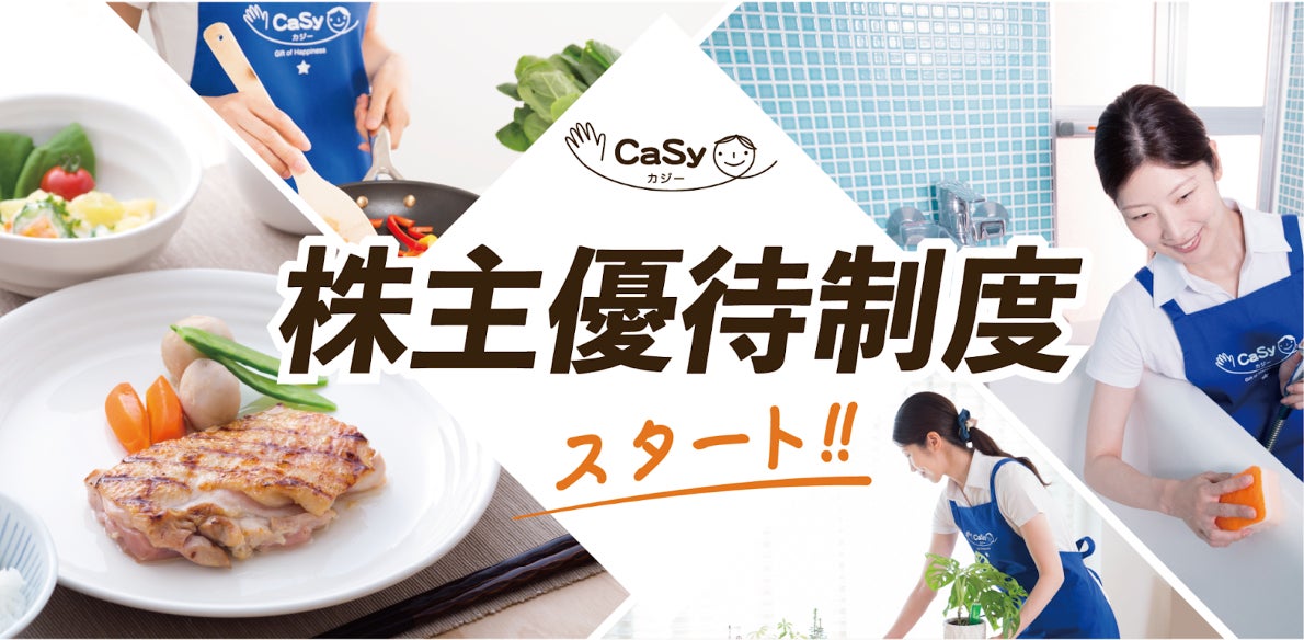 家事代行サービスを中心とした暮らしのマッチング・プラットフォームを手掛ける株式会社CaSy(本社:東京都品川区、代表取締役:加茂雄一、以下カジー、東京証券取引所グロース市場/ 証券コード:9215)は、株主優待制度の導入を開始することをお知らせします。