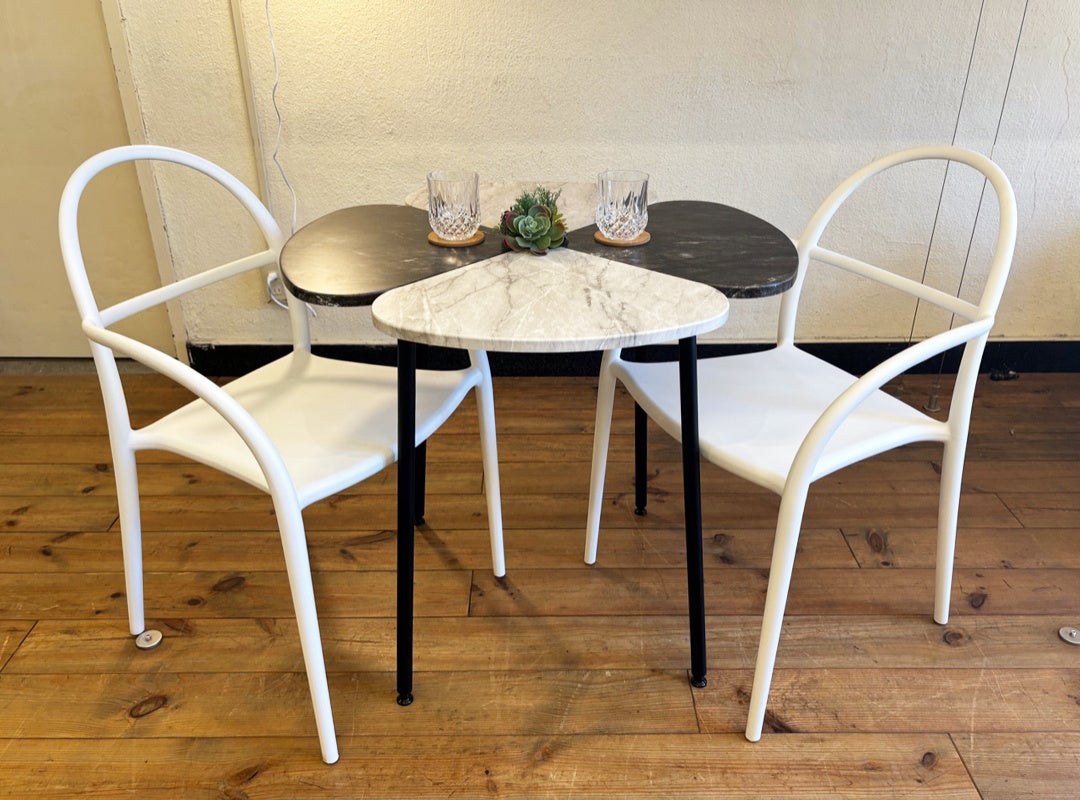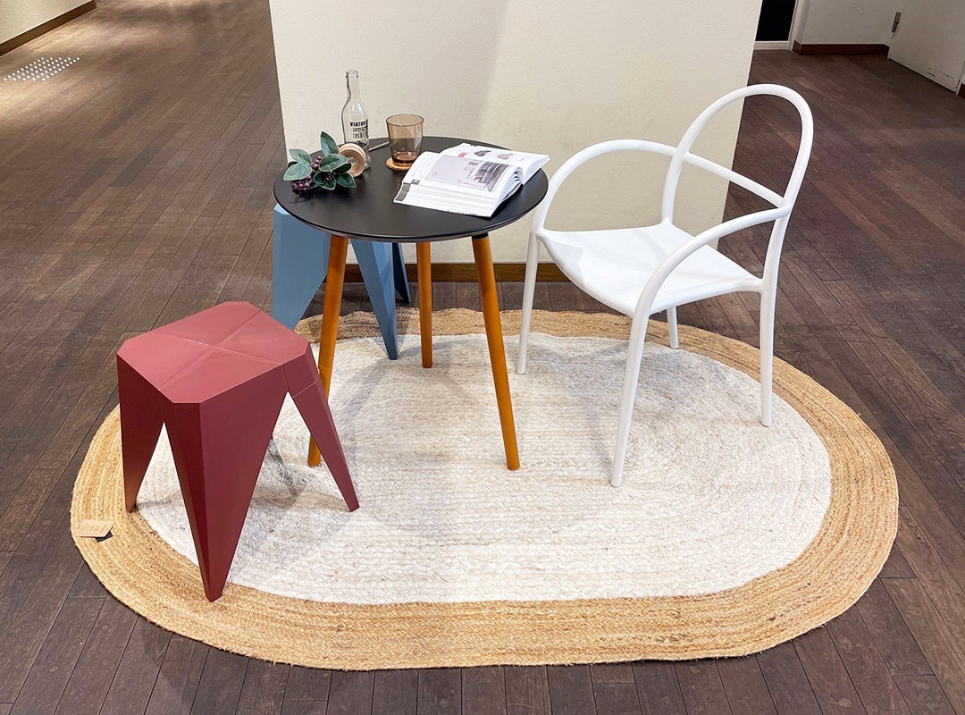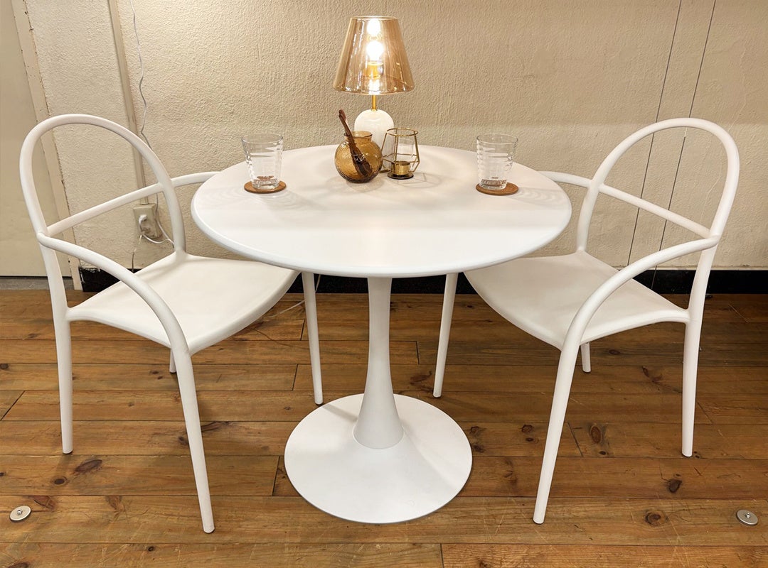 スケルトン構造は、空間を占める体積が小さくなるため、圧迫感を抑えられます。こちらのチェアは、線の細い曲線と白のカラーリングにより、一層繊細なイメージが強調されています。また、スタッキングできるので、使用しないときや空間を利用したいときに重ねて置くことができます。