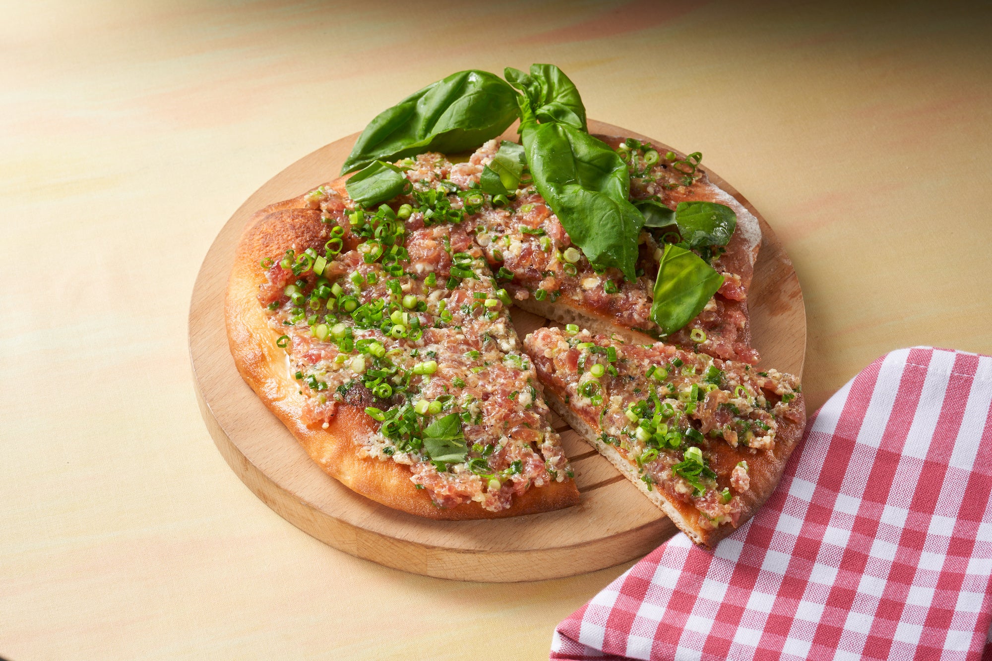 ※市販品のピザ生地を使うときは、オーブントースターで5分ほど温め、①を塗る。