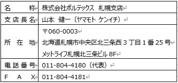 株式会社ボルテックス 札幌支店を移転2022年8月15日(月)より業務開始