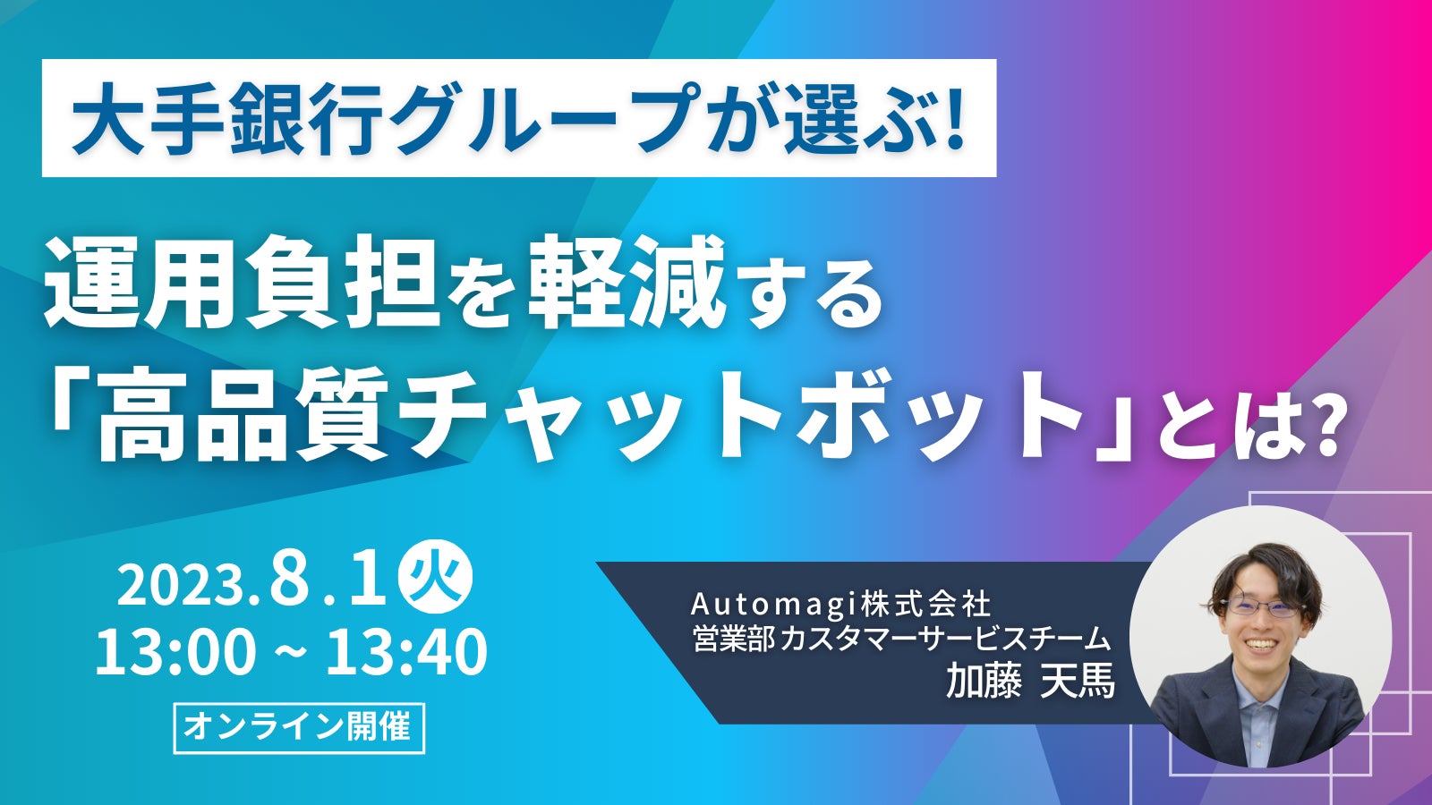 【8/1(火)】Automagiがウェビナー『大手銀行グループが選ぶ!運用負担を軽減する「高品質チャットボット」とは?』を開催