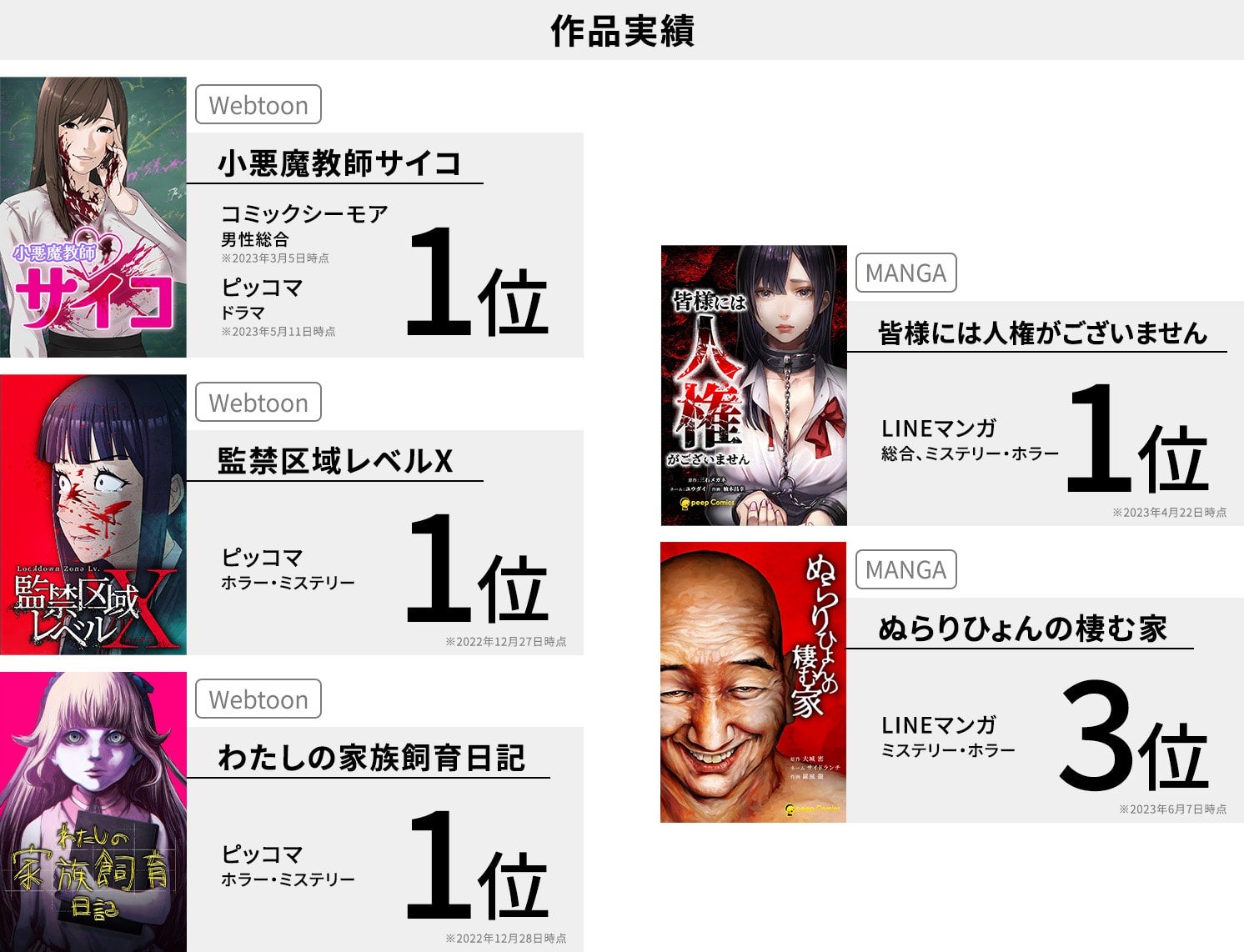 今回調達した資金を活用し、自社ノベル作品のマンガ化・Webtoon化や、現在主力となっているホラージャンル以外の様々なジャンルの作品創出、海外展開に取り組んでまいります。また、作品ジャンル拡大に伴う組織体制の強化を行い、引き続きマンガ・Webtoon事業を一層加速させてまいります。