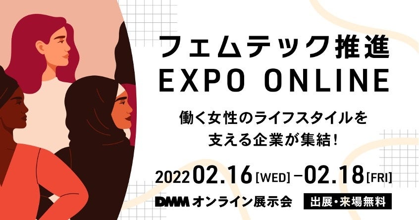 フェムテック推進EXPO ONLINE ( https://exhibition.showbooth.dmm.com/events/femtech2202/ )は、2022年2月16日から2月18日まで開催される無料のオンライン展示会です。