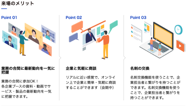 また、働く女性を支えるための福利厚生向けアプリ・サービスなども出展対象です。短時間で多くの情報を取得でき、新たな出会いも期待できる展示会ですので、この機会をぜひご活用ください。