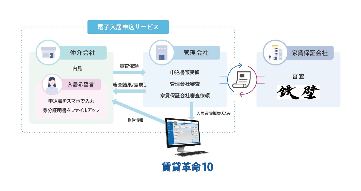 不動産テックの日本情報クリエイト株式会社(本社:宮崎県都城市、代表取締役社長:米津 健一、以下「日本情報クリエイト」)がクラウドで提供する「電子入居申込サービス」と、株式会社鉄壁(本社:東京都渋谷区、代表取締役社長 髙橋 祐二、以下「鉄壁」)は、電子入居申込サービスのデータを活用した家賃保証サービス申込に関する提携を開始しました。