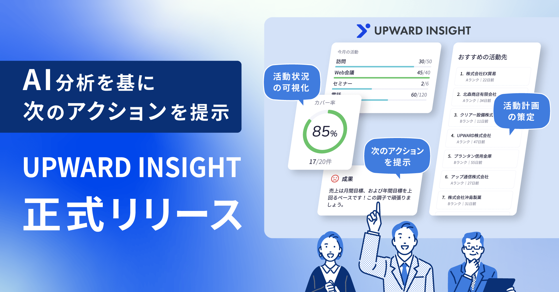 UPWARD、営業活動のAI分析で推奨顧客の抽出・ネクストアクションを提示する「UPWARD INSIGHT」をリリース