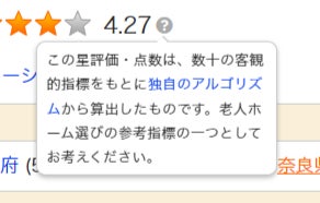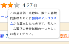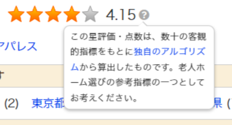 みんなの介護独自のアルゴリズムによりブランドごとに5段階で評価をしています。点数が高いほど評価の高い施設ということになります。
