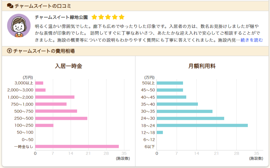 また、施設の口コミ情報も載っているので、実際に見学に行った方の生の声も読むことができます。