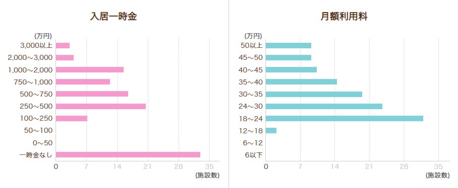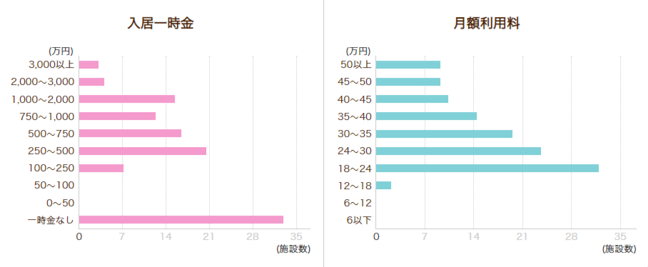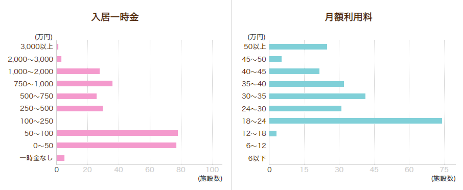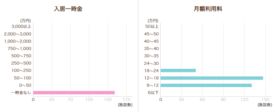 多くの施設を展開している都道府県や、老人ホームの施設種別がわかります。