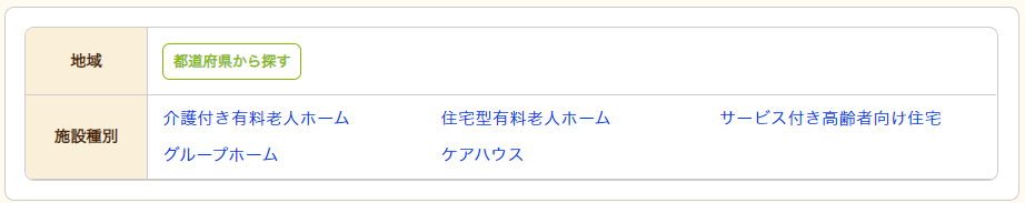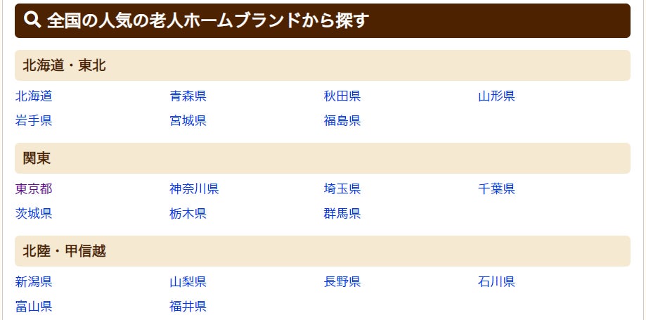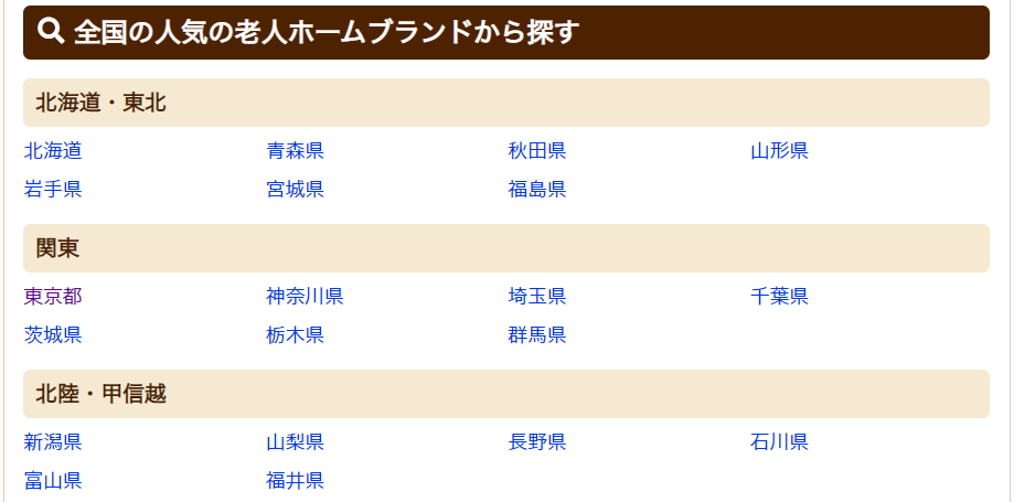 グループホームを多く展開しているブランドや、東北エリアに多くの施設を保有するブランドなど、ニーズに合ったブランドを探すのに役立つ機能です。