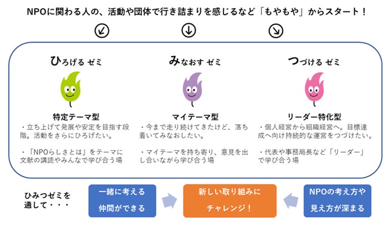 ・ゼミの詳細は集まったメンバーの問題意識や関心事に沿って決定します。複数のゼミに参加も可能で、日本NPOセンターのスタッフも各ゼミで一緒に議論・伴走させていただきます。