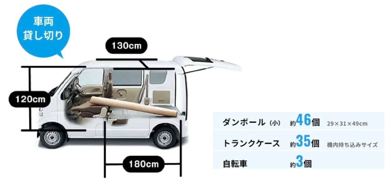 *1車両に載せられる分はどれだけ載せてもOKです。最大積載量350kgの目安