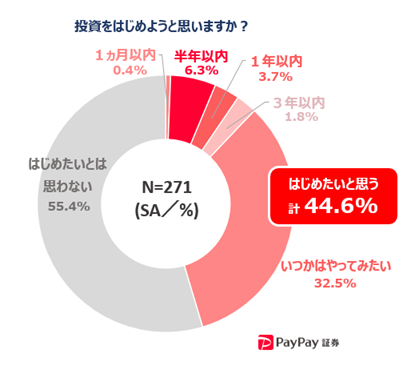 また、投資をしていない人の中で、投資をしたいと考えている人の割合を見ると、実に44.6%と、投資はしたいが、踏み切れていない人が約半数いることが分かりました。