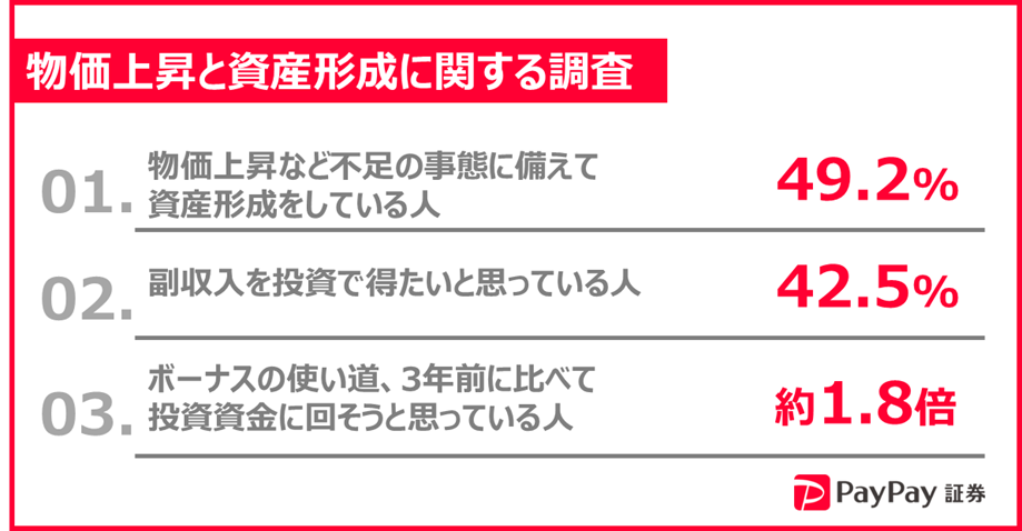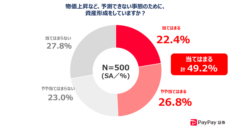 「資産運用を、より身近に。」をミッションに運営するスマホ証券、PayPay証券株式会社(東京都千代田区、代表取締役:番所 健児)は、全国の20歳~69歳の働く男女500名を対象に「物価上昇と資産形成に関する調査」を2022年6月3日~6月6日に実施しました。