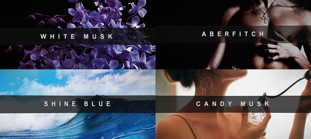 当社カーフレグランスで人気の香水調の香り『ホワイトムスク』『アバフィッチ』『シャインブルー』の3品に、新香料の『キャンディームスク』を加えた4香調をラインナップ。(『ブラング リキッド CR LOW』は『ホワイトムスク』『アバフィッチ』『キャンディームスク』の3香調)また、香りをクリーンに楽しむために、消臭剤を配合しています。