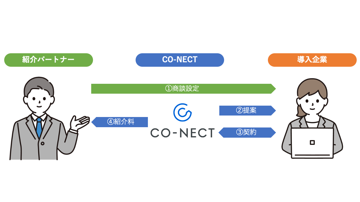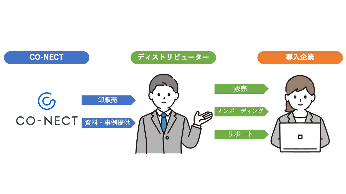 そこで、このたび正式に「ディストリビューター」と「紹介パートナー」からなるパートナー制度を設けることでCO-NECTのサービス展開をより強く推進してDX推進に貢献していきたいと考えております。