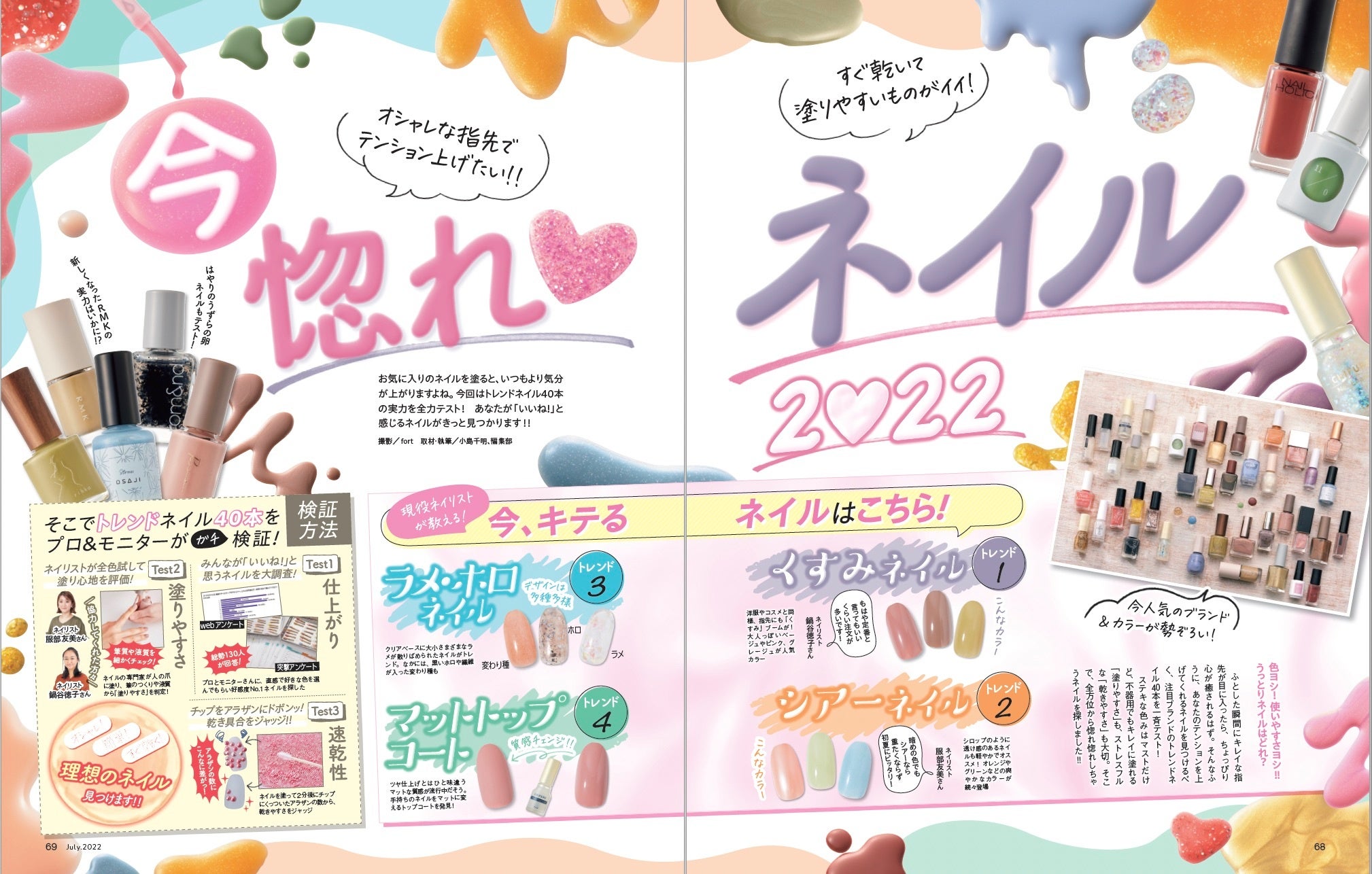お気に入りのネイルを塗ると、いつもより気分が上がりますよね。そこで、注目ブランドのトレンドネイル40本を一斉テスト! ステキな色みはもちろん、塗りやすくて乾きやすいネイルを探しました。