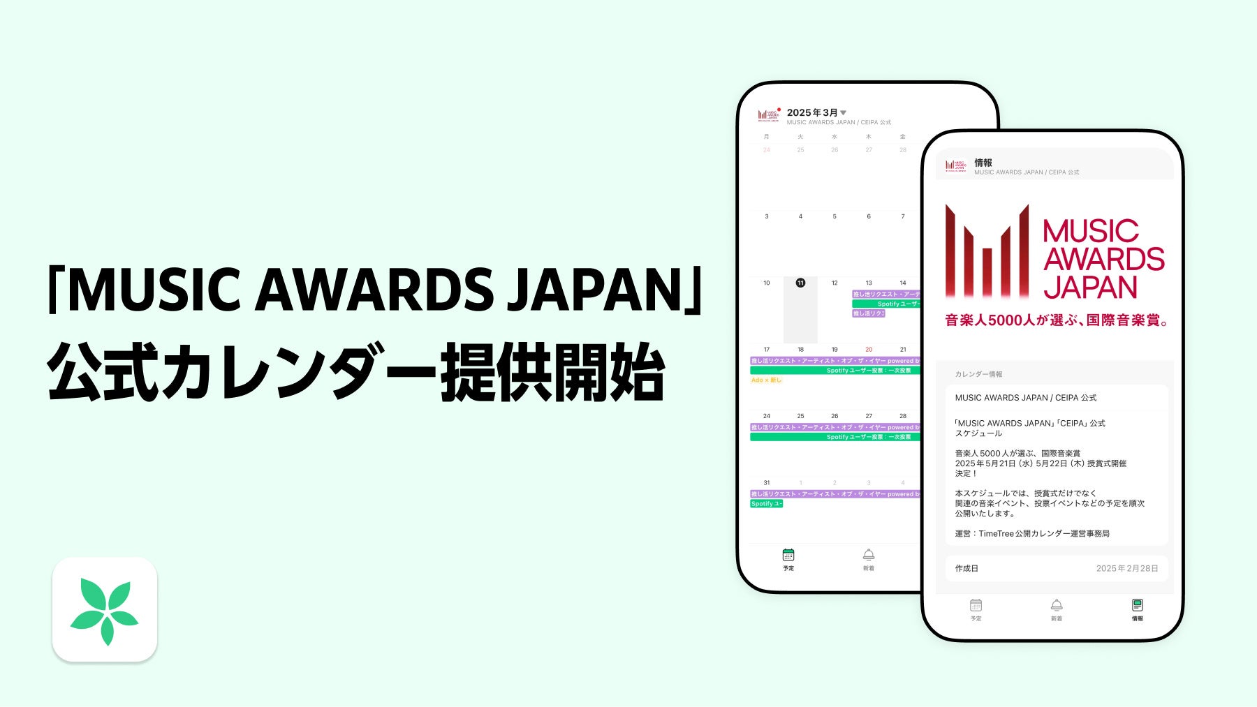 「TimeTree 公開カレンダー」にて、国内最大規模の国際音楽賞「MUSIC AWARDS JAPAN」公式カレンダーの提供を開始